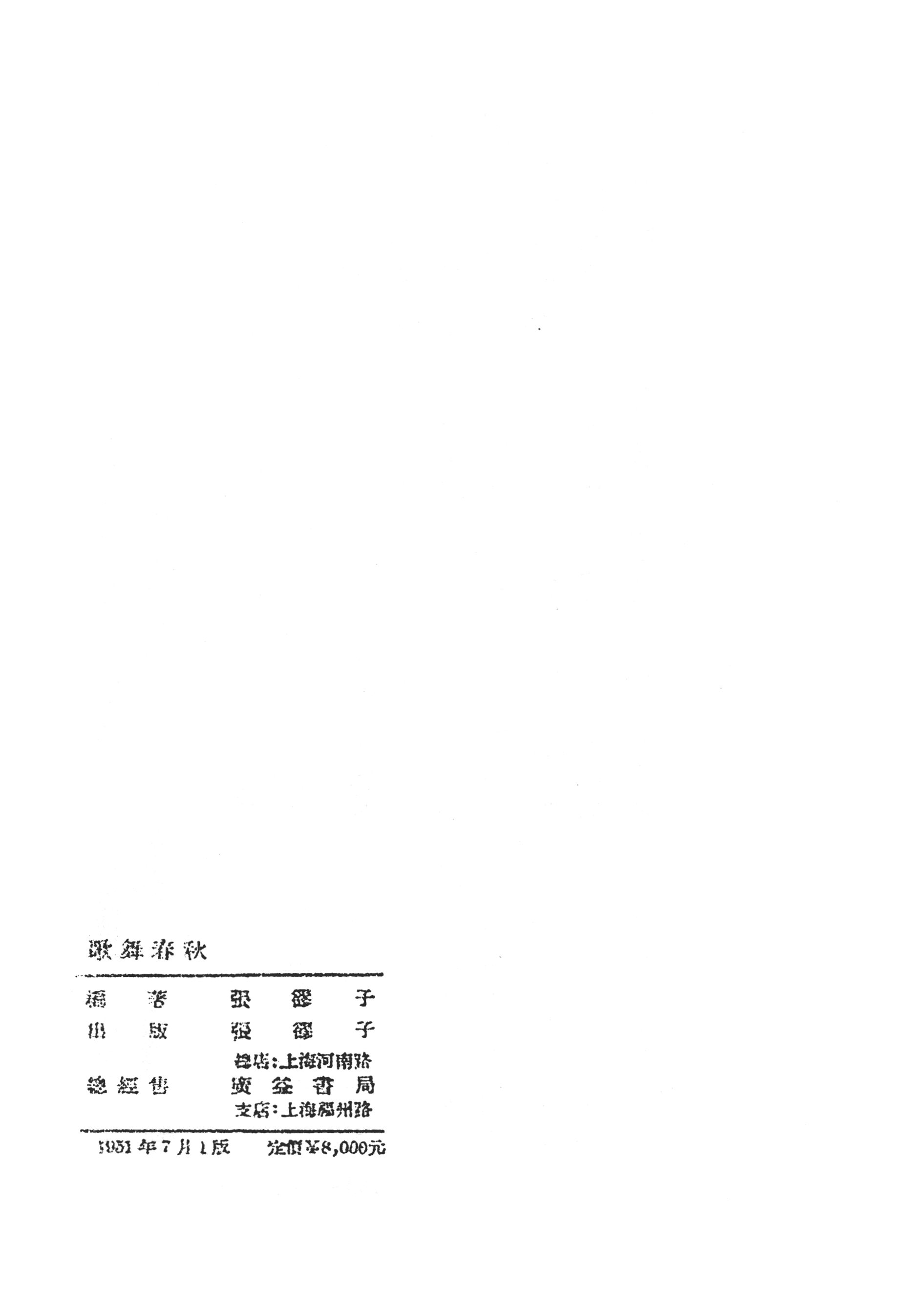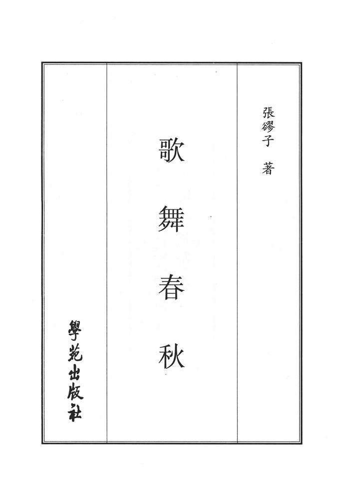 《听歌想影录》据天津书局1941年版影印。《歌舞春秋》据上海广益书局1951年版影印。两书的作者为著名剧评家、名票张聊公。《听歌想影录》是作者在北京观戏的记录,时间从 1913 年至 1918 年。《歌舞春秋》分上下两编,是作者在北京和天津观戏的记录。上编自 1916 年至 1924 年,是北京部分;下编从1929 年至1935 年,为天津部分。这两种书记录了民国初年北京各剧场演出京剧的盛况,以及诸多名角在台上的风采、演技等等。记载翔实,举凡伶官之沉浮、剧场之兴废,都有时间、地点可查,非一般传闻或间接所得者可比。
