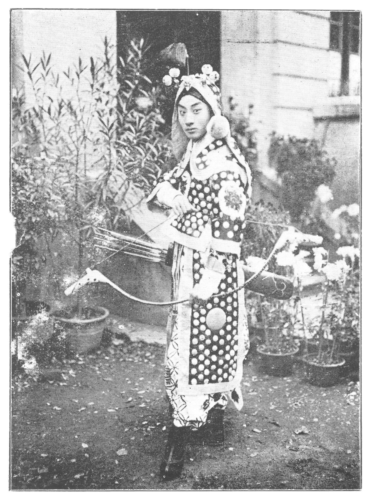 梅蘭芳 名瀾 字畹華 江蘇泰縣人 今年二十九歲 於前淸光緖三十一年 登台演劇 即爲都人所盛稱 十九歲赴滬 聲譽大噪 舉國皆知矣 二十四歲後 徧徘各種歌舞劇 每一出演 觀者空巷 二十六歲 應日本東京帝國劇場之聘 東渡獻藝 大受歡迎 自是歐美各國之美術家與文學家 親往訪談 或函索像片者 絡繹不絕 二十九歲 又赴香港 港政府待遇備極優渥 路透電社 更舉其一言一動 報吿各國 聲名洋溢 世界嚮企 其遭際之隆蓋中國伶界自來所未有也 祖巧玲 父竹芬 均業優 負盛譽 而伯父雨田 操胡琴 名尤著原版阅读