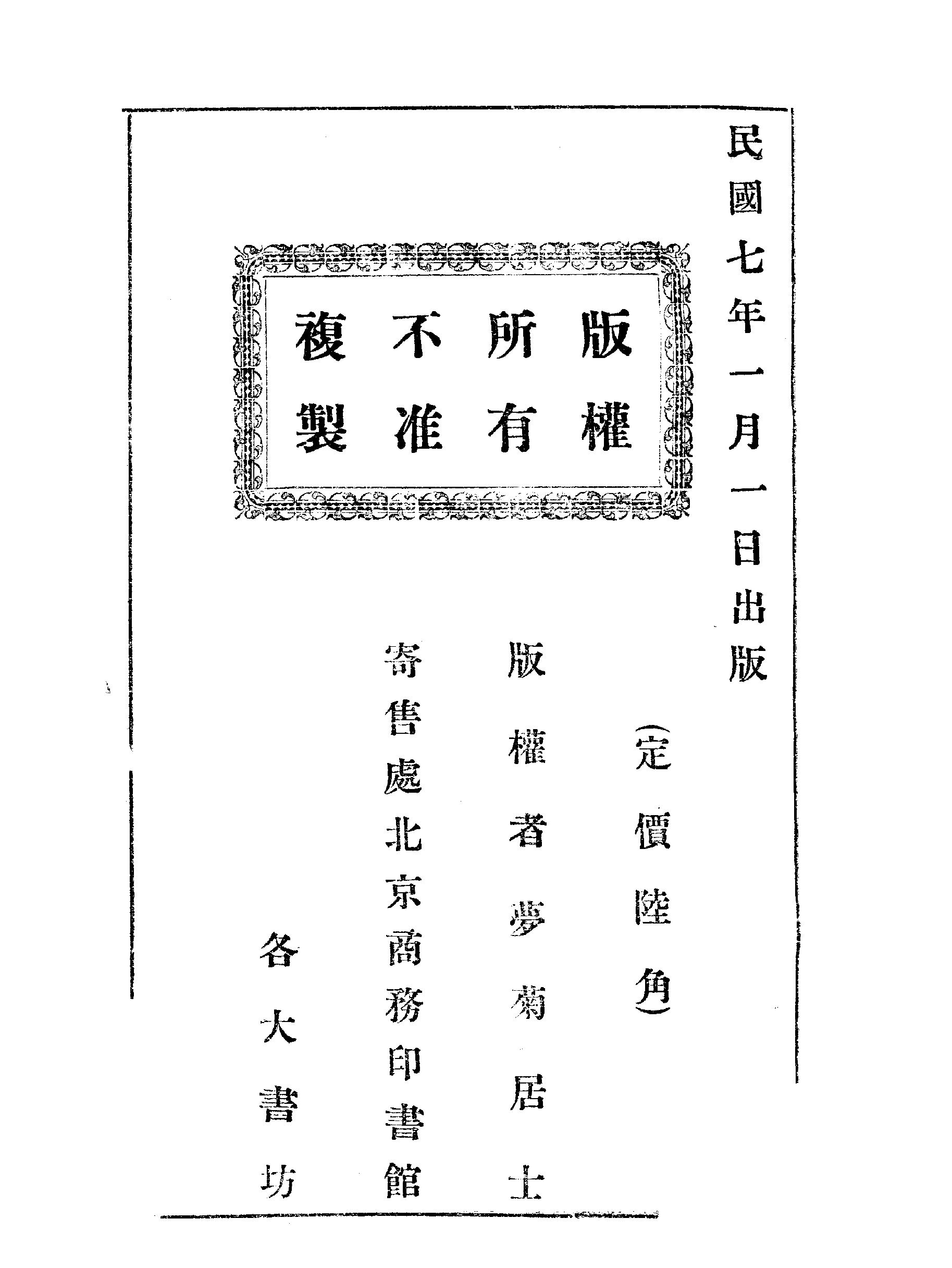 中華民國六年十月上旬鄂人夢菊居士題原版阅读