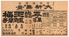 1926 年底,梅兰芳大新舞台商演结束后,上海临时慈善会为筹款赈济事,公请梅假座大新舞台演剧三天。此为第一天戏单,是晚梅兰芳唱双出。