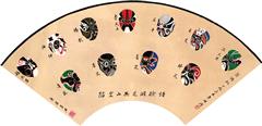 翁偶虹手绘《陷空山·无底洞》脸谱扇面