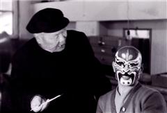 侯玉山指导儿子侯广有勾画《钟馗嫁妹》脸谱(陈家让摄)