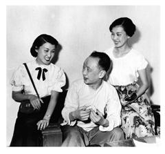 虞俊芳、虞俊声与马连良在后台合影