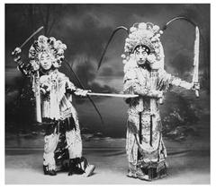 《虹霓关》朱素云饰王伯当(右)、杨孝亭饰东方氏(左)