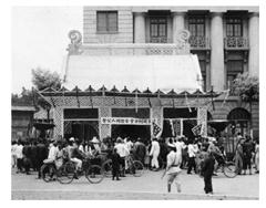 年方二十六岁的李世芳因飞机失事不幸罹难,图为北京梨园界搭建的祭棚外景。